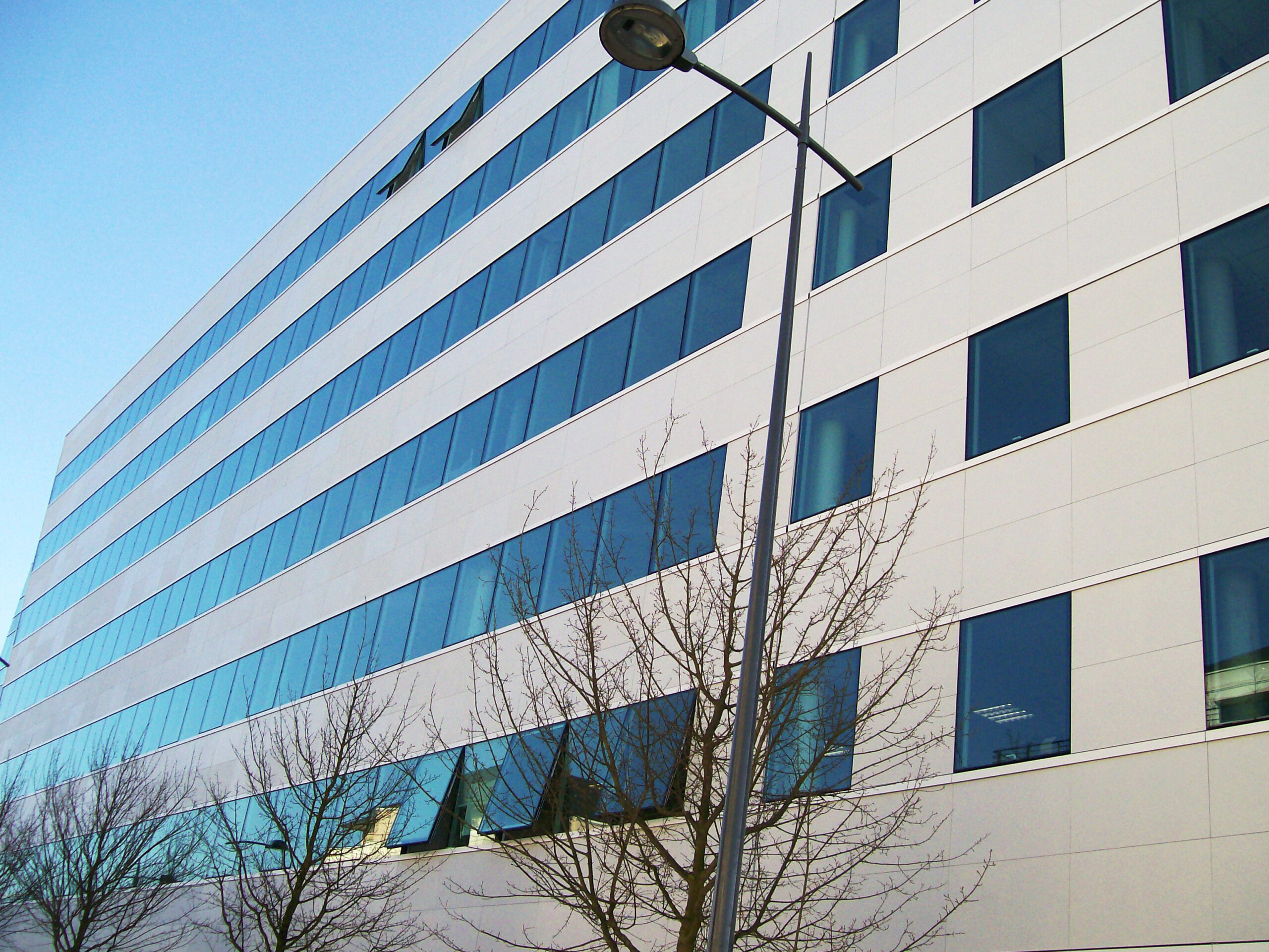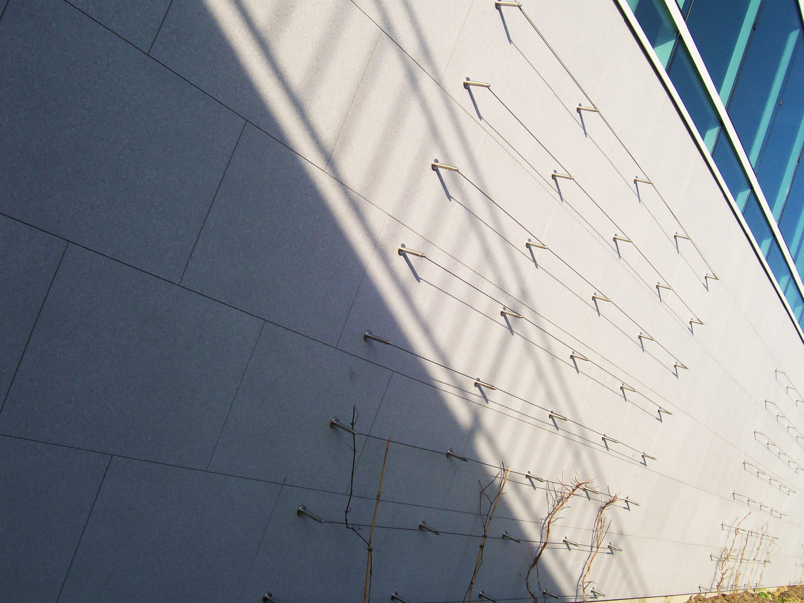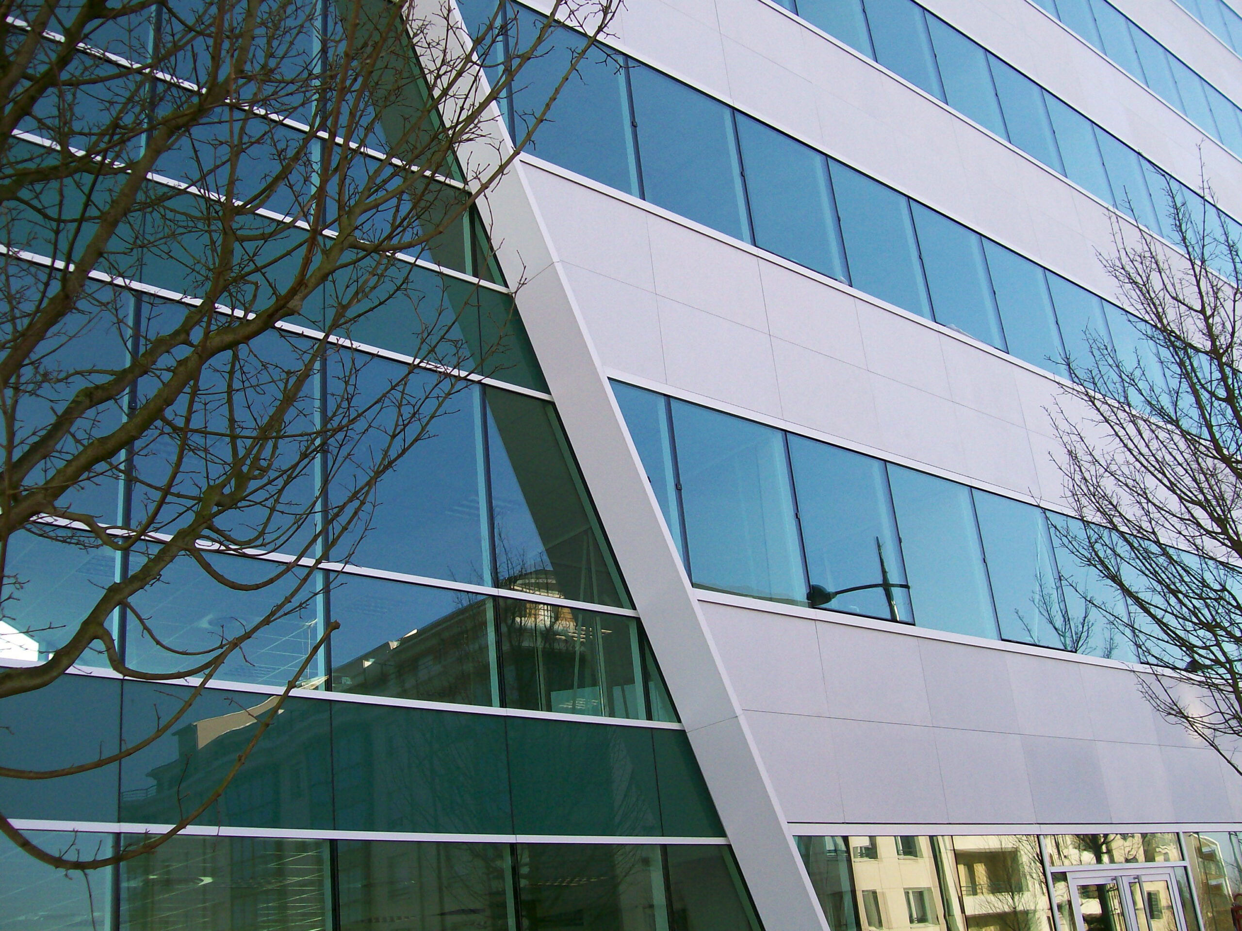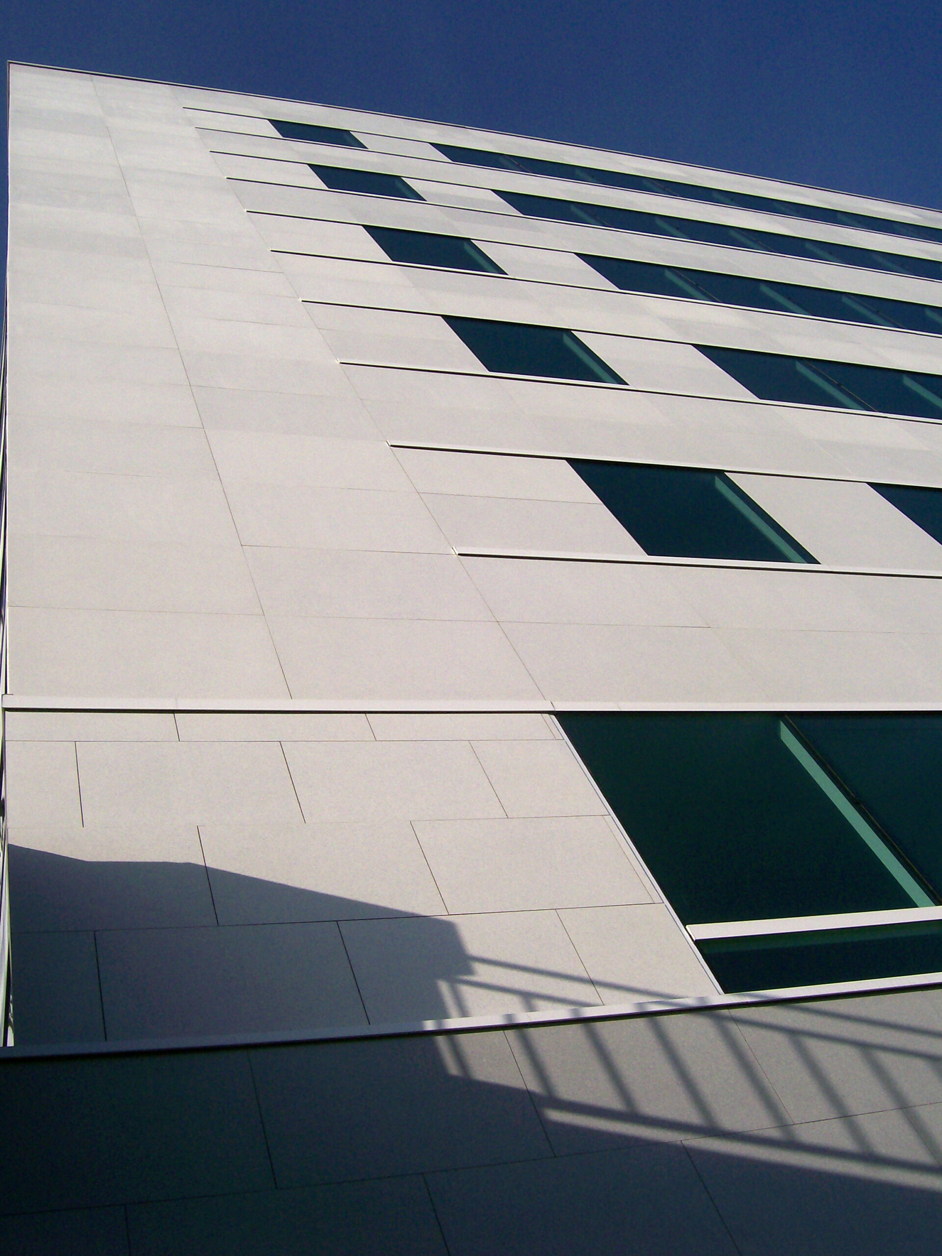 Die Fassade dieses Bürogebäudes wurde mit mineralischen Fassadenverkleidungen gebaut: LISSE VELOUTÉ von Carea. Sie wurden als Teil einer Vorhangfassade verwendet. In den unteren Bereichen wurde eine dickere Verblendung (21 mm) verwendet, wodurch die Unterkonstruktion verstärkt wurde. Diese Verblendung ist nicht nur stoßfest, sondern aufgrund ihrer mineralischen Beschaffenheit auch nicht porös: Sie ist resistent gegen Graffiti und reduziert somit die zukünftigen Wartungskosten.