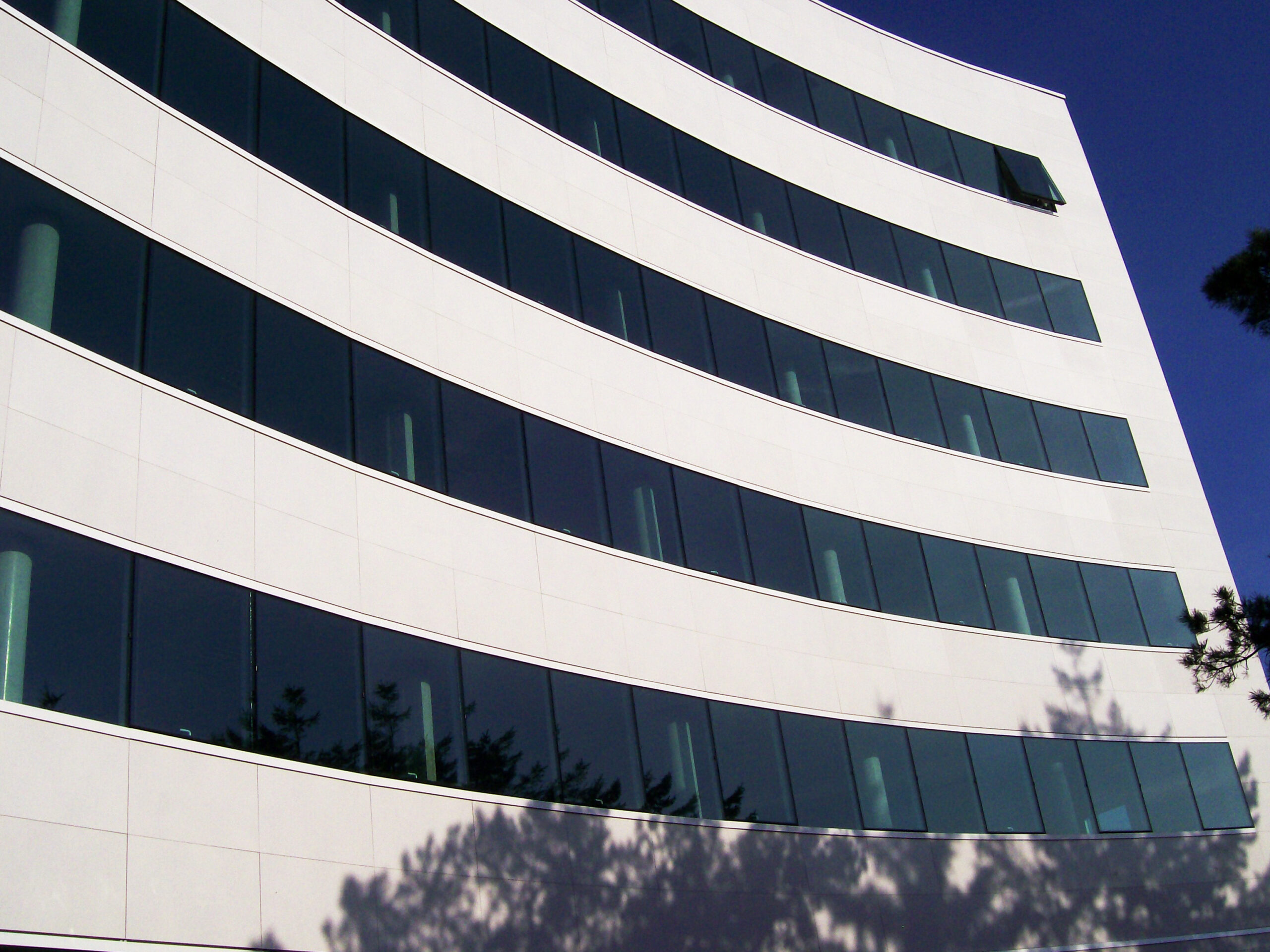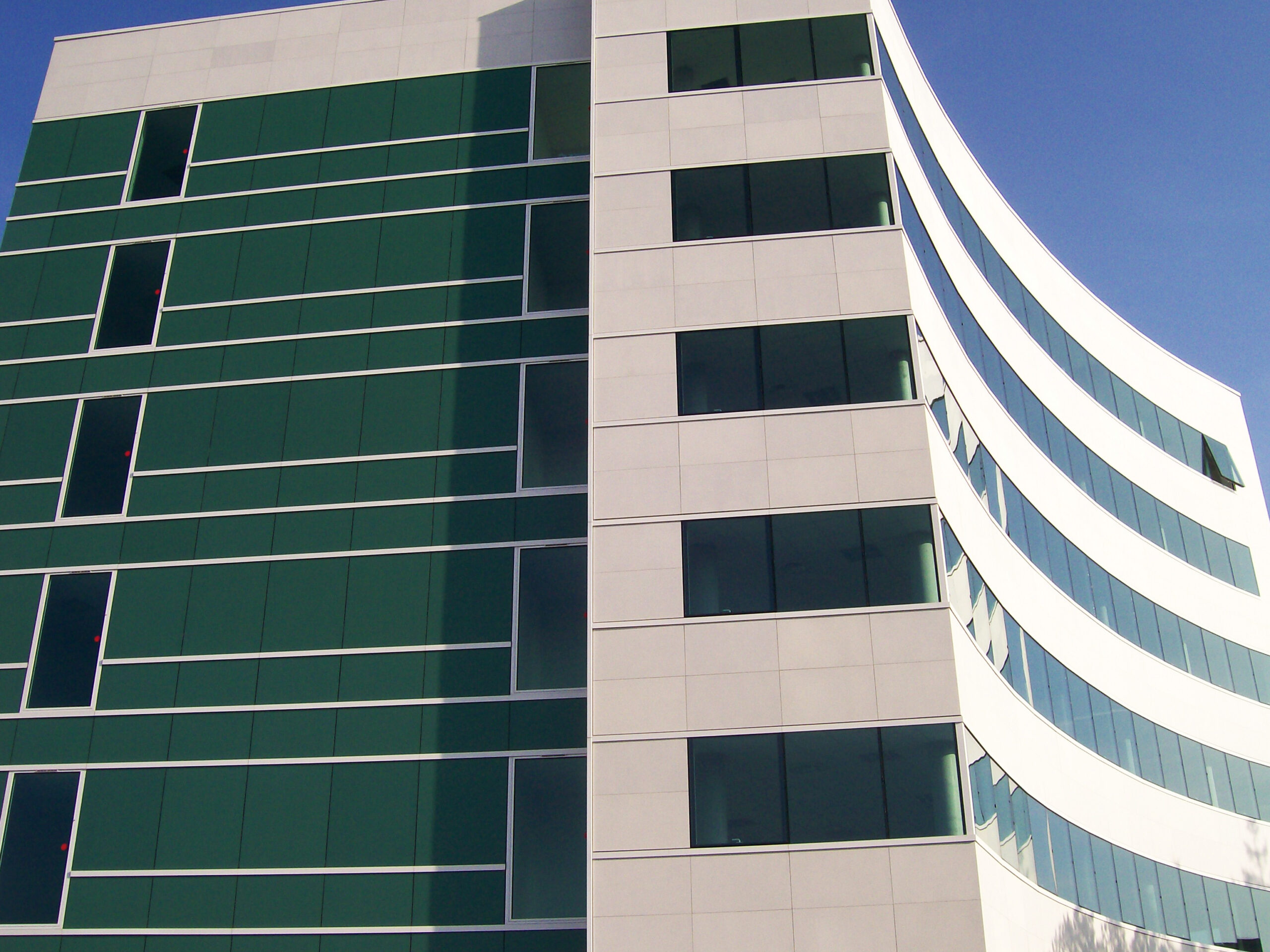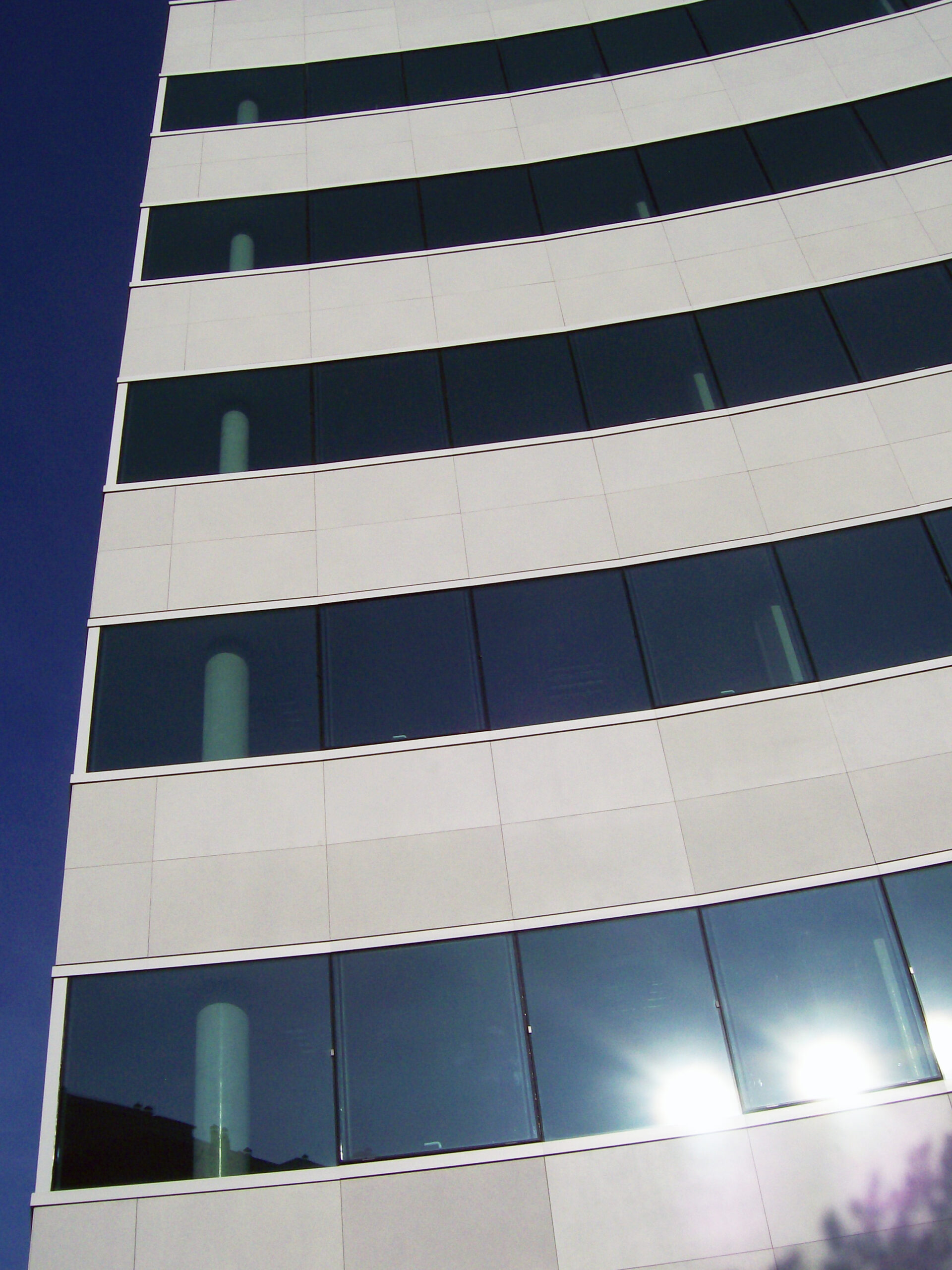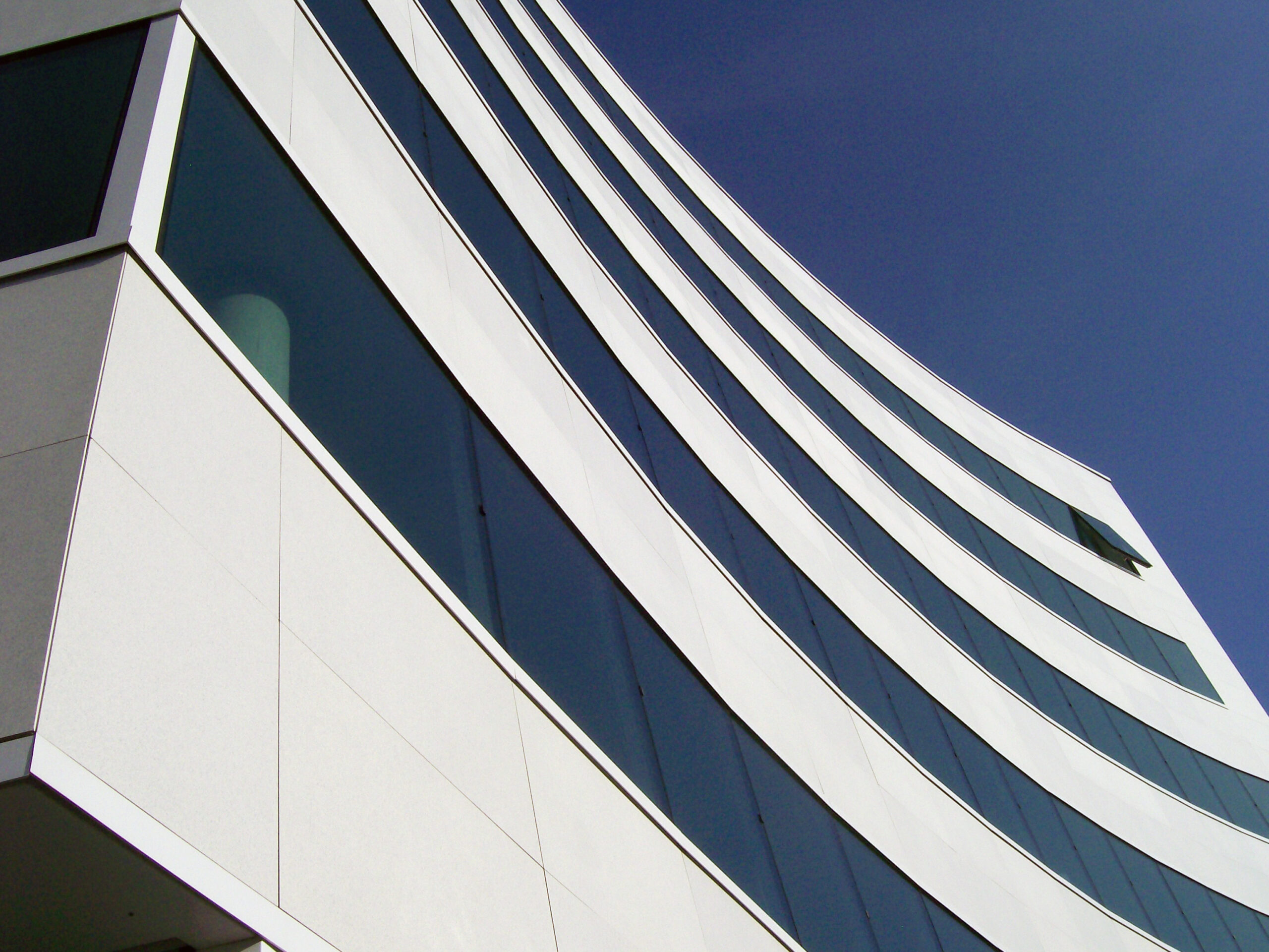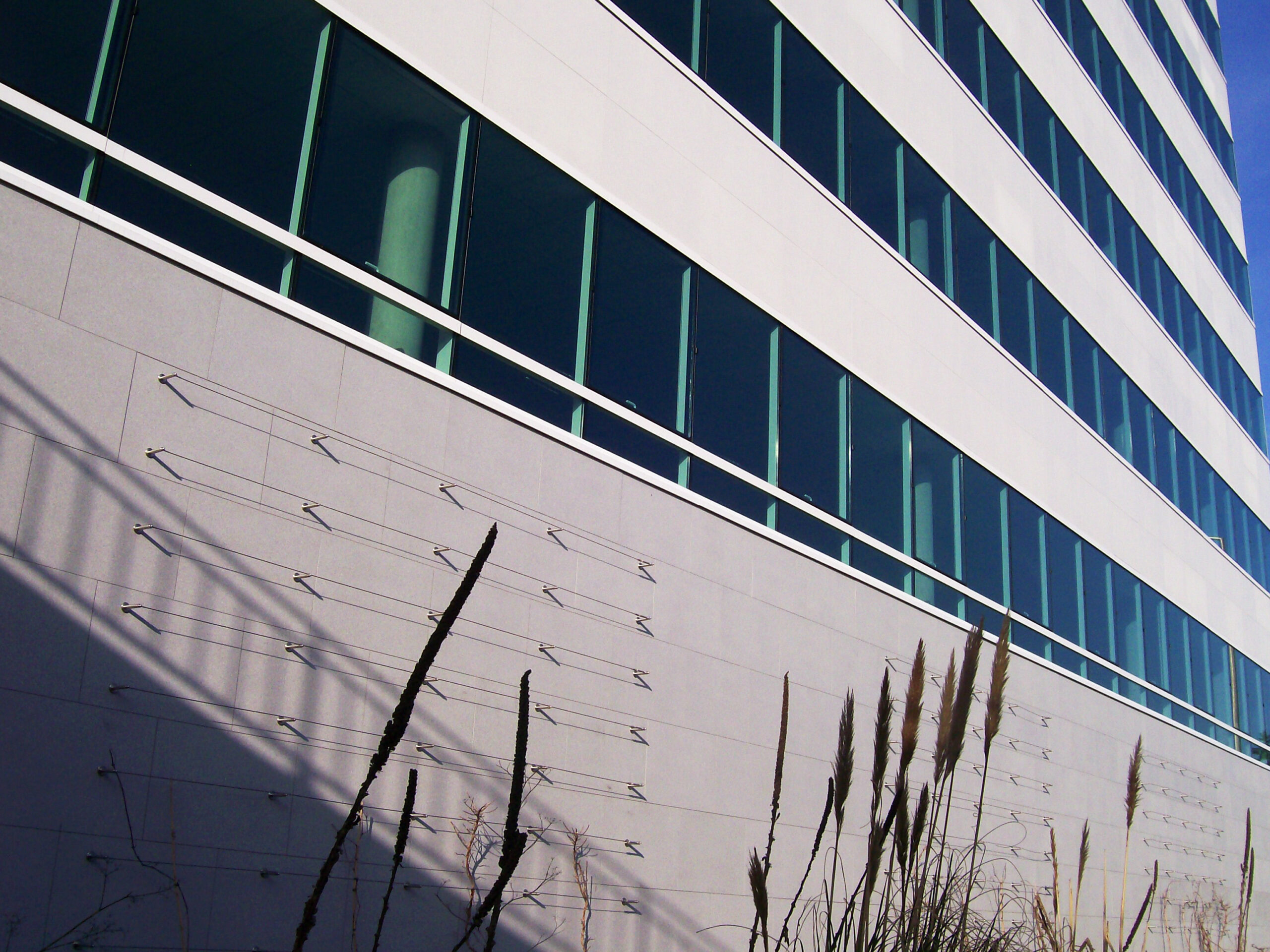 Die Fassade dieses Bürogebäudes wurde mit mineralischen Fassadenverkleidungen gebaut: LISSE VELOUTÉ von Carea. Sie wurden als Teil einer Vorhangfassade verwendet. In den unteren Bereichen wurde eine dickere Verblendung (21 mm) verwendet, wodurch die Unterkonstruktion verstärkt wurde. Diese Verblendung ist nicht nur stoßfest, sondern aufgrund ihrer mineralischen Beschaffenheit auch nicht porös: Sie ist resistent gegen Graffiti und reduziert somit die zukünftigen Wartungskosten.