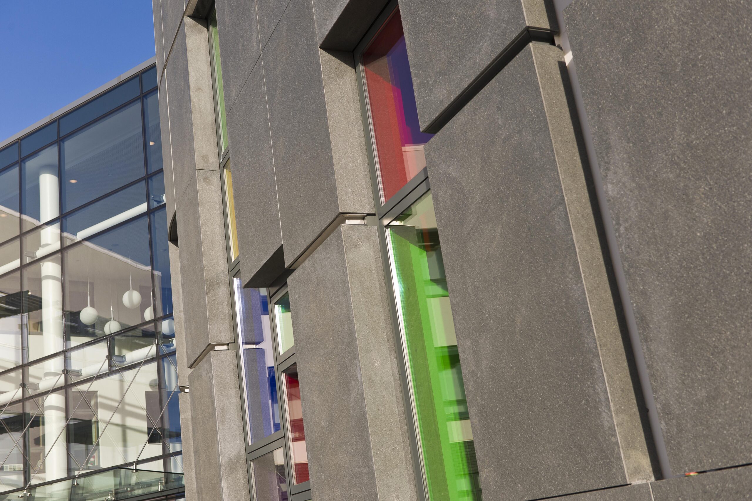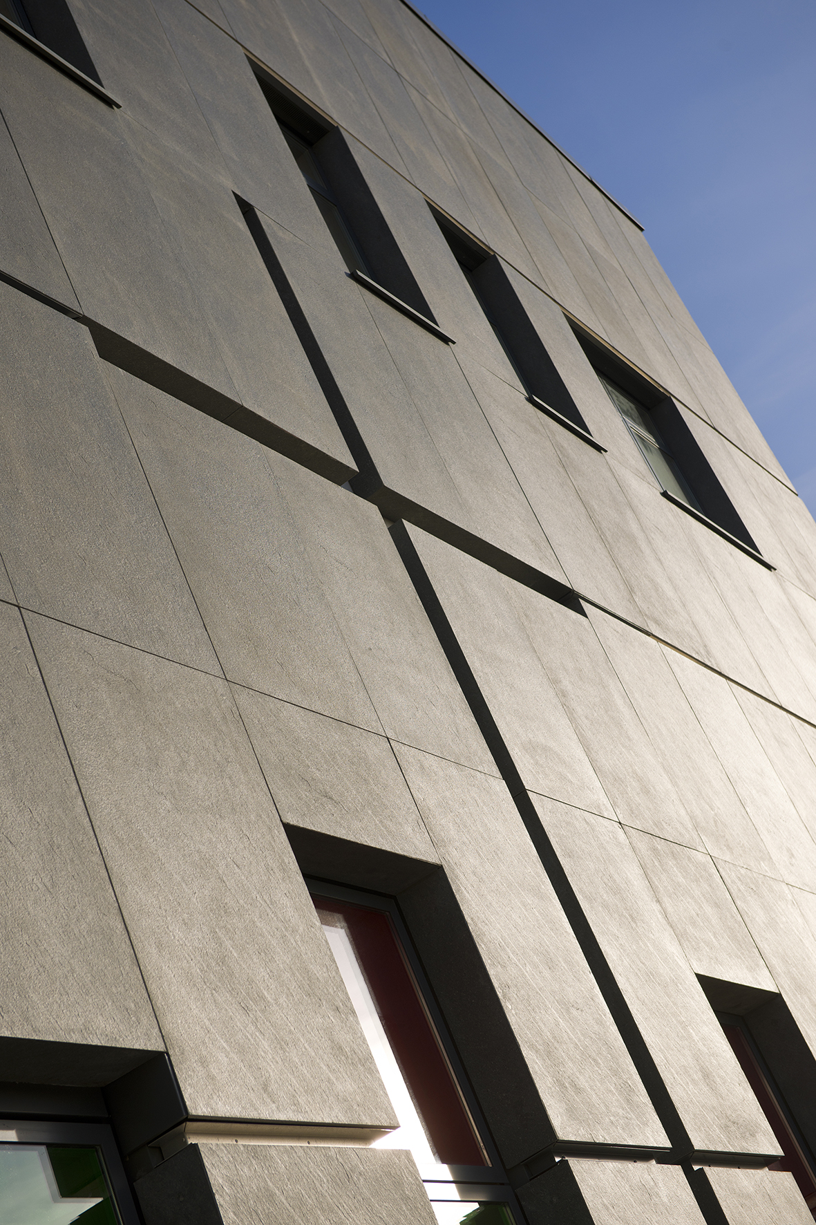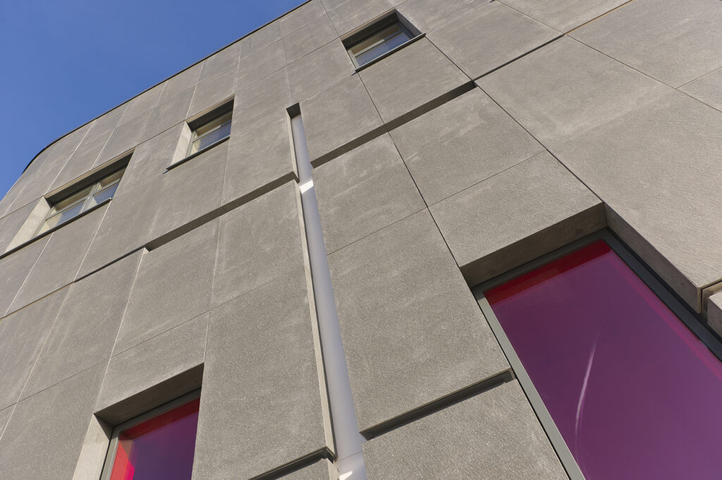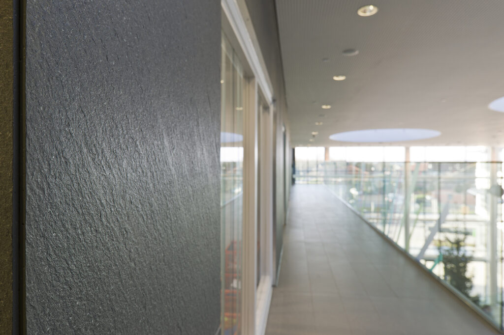 Um etwa 50% der Außenwände des dreistöckigen Gebäudes zu bedecken, wählte HLM Architects Carea Paneele mit Einlagen, die mit einer basaltfarbenen Granitoberfläche versehen sind. Die 16 mm dicken, dunkelgrauen Paneele werden eine wichtige Rolle in der zeitgenössischen Silhouette des Gebäudes spielen und die moderne Architektur perfekt ergänzen. Die Artema Fassadenverkleidung von Carea ist die ideale Lösung für die Schule, da sie Ästhetik und Leistung miteinander verbindet. Das System bietet neben seiner thermischen Effizienz und seiner ästhetischen Qualität noch weitere Vorteile: Die Artema Paneele wurden so entworfen und hergestellt, dass sie eine porenfreie Oberfläche haben und nur ein Minimum an Wartung erfordern. Sie sind widerstandsfähig gegen Graffiti, Witterung und Elemente und stellen eine kostengünstige Lösung dar.