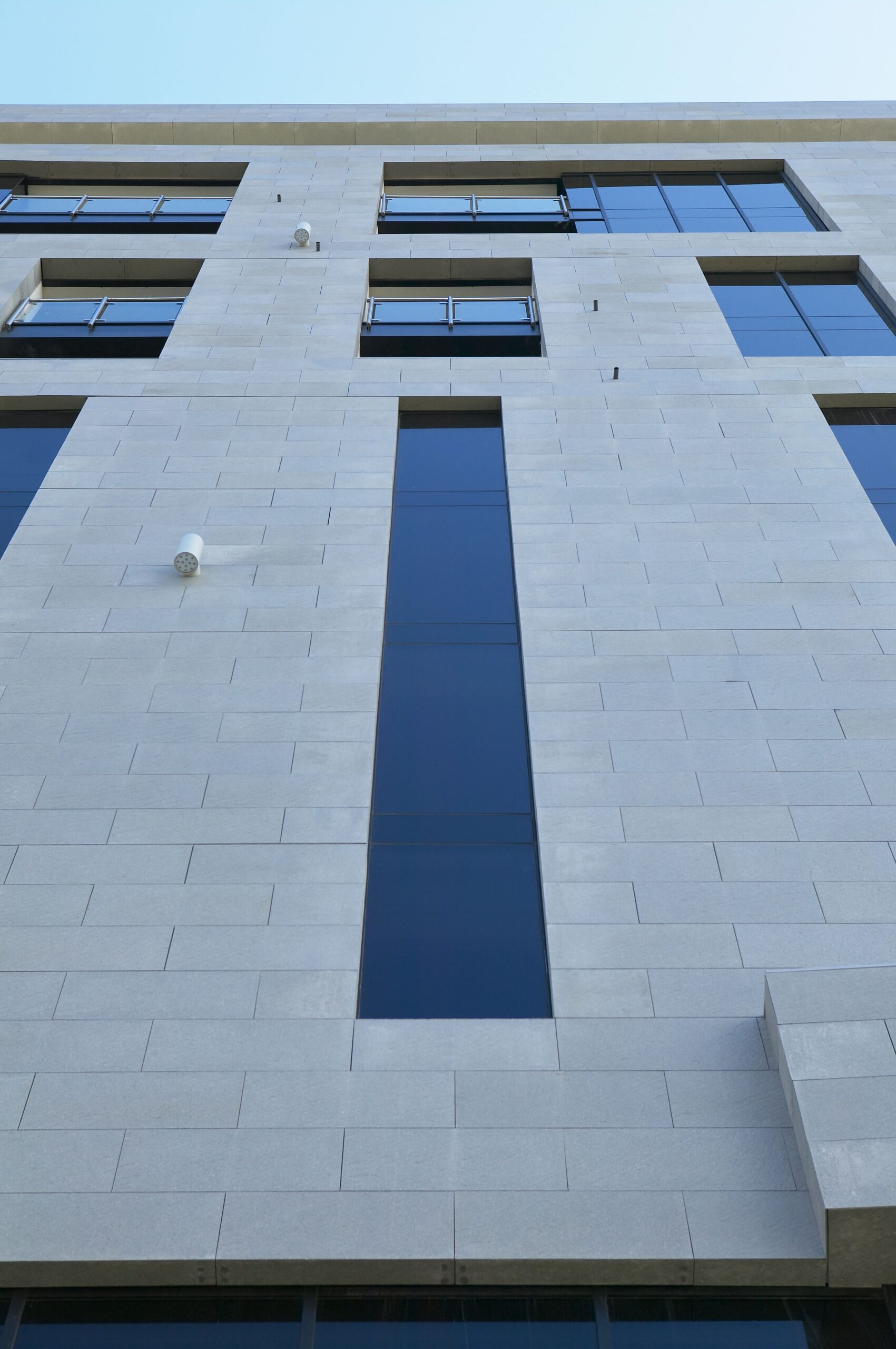 Carea lieferte ca. 4.000 m² Fassadenverkleidung mit Unterkonstruktion (BAO) in GRANITÉ und LISSE MAT mit einer Farbe, die der von Graphit ähnelt.