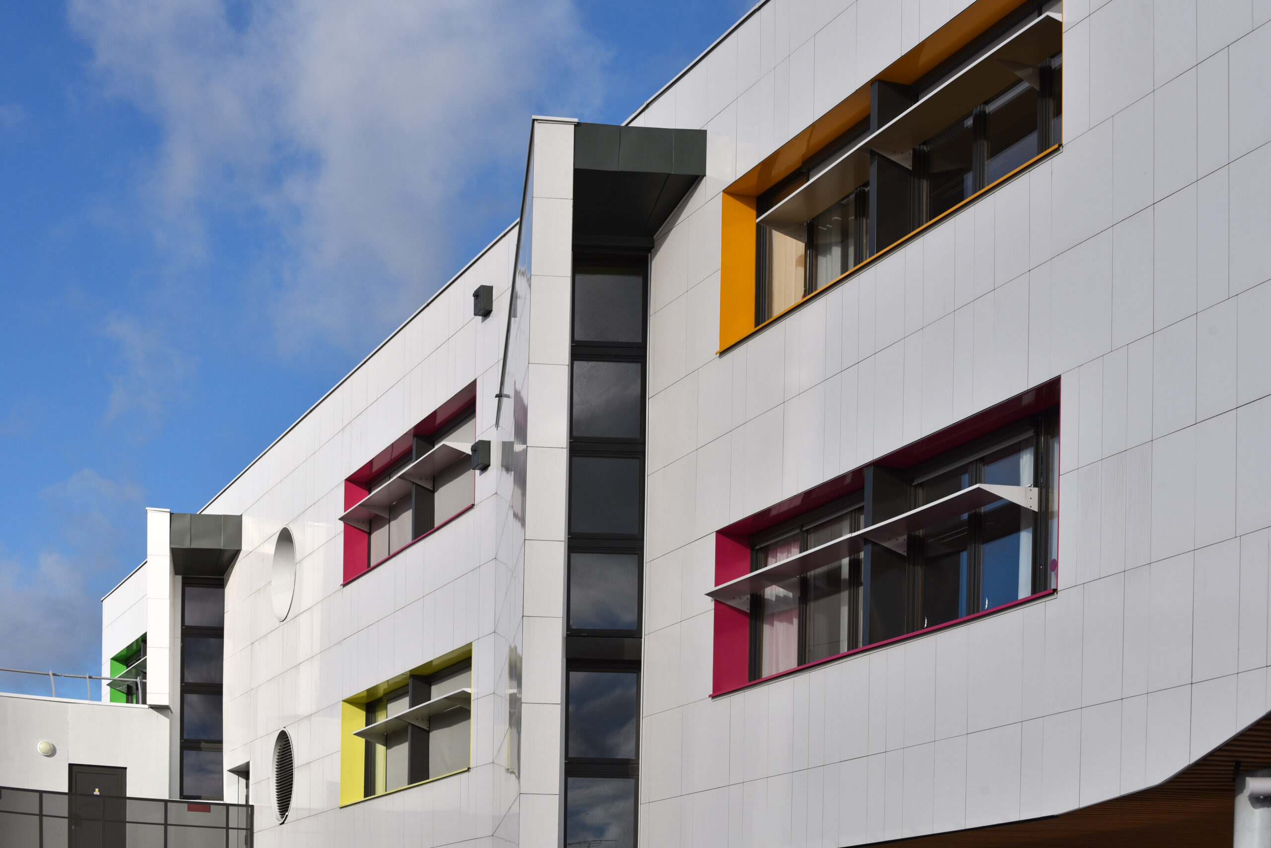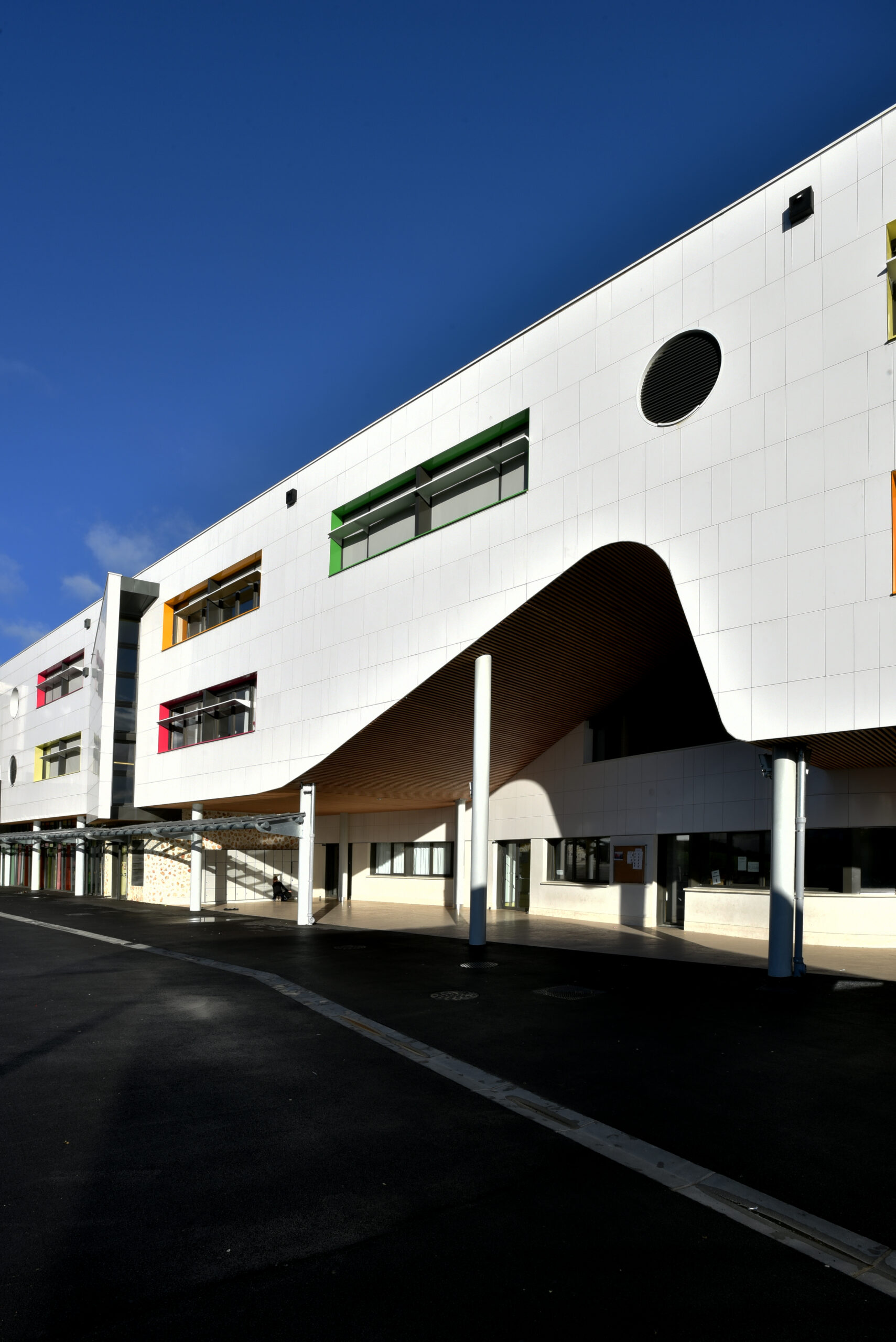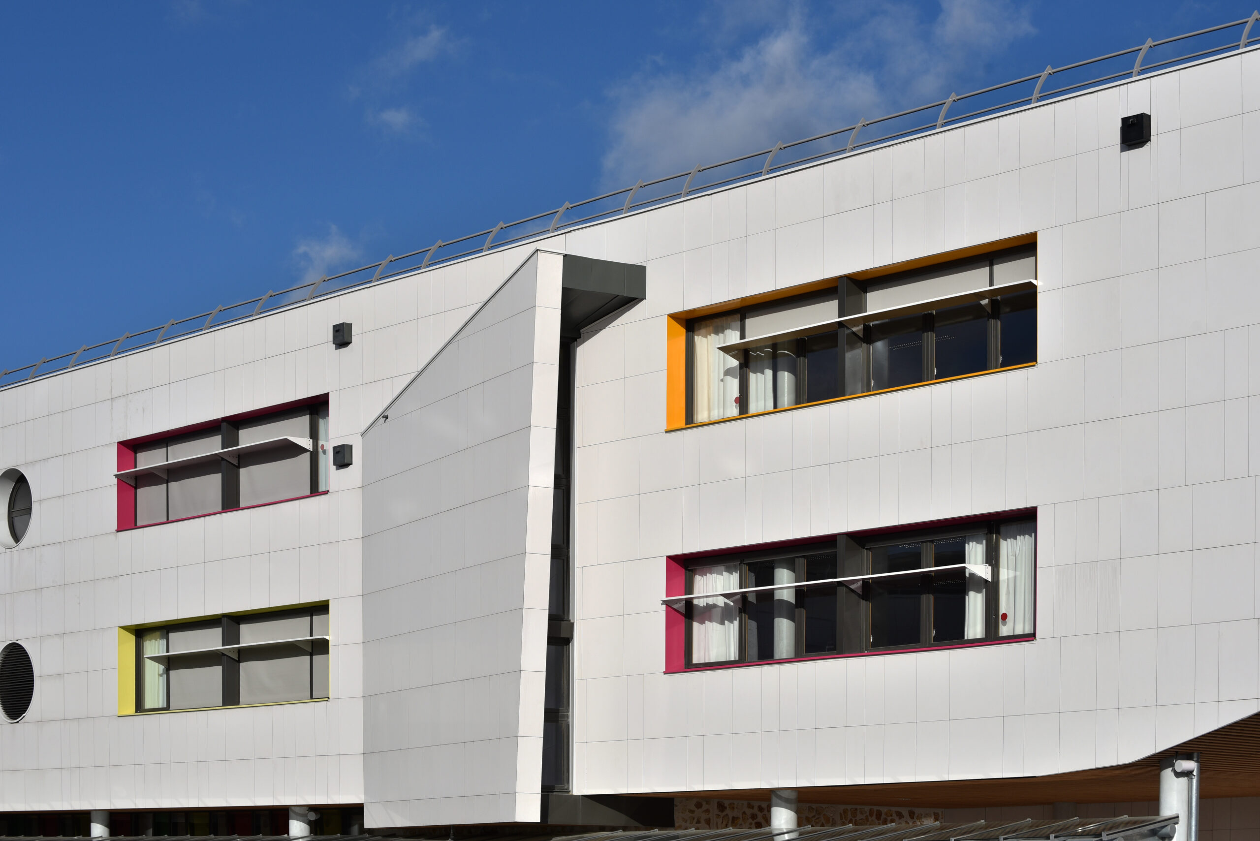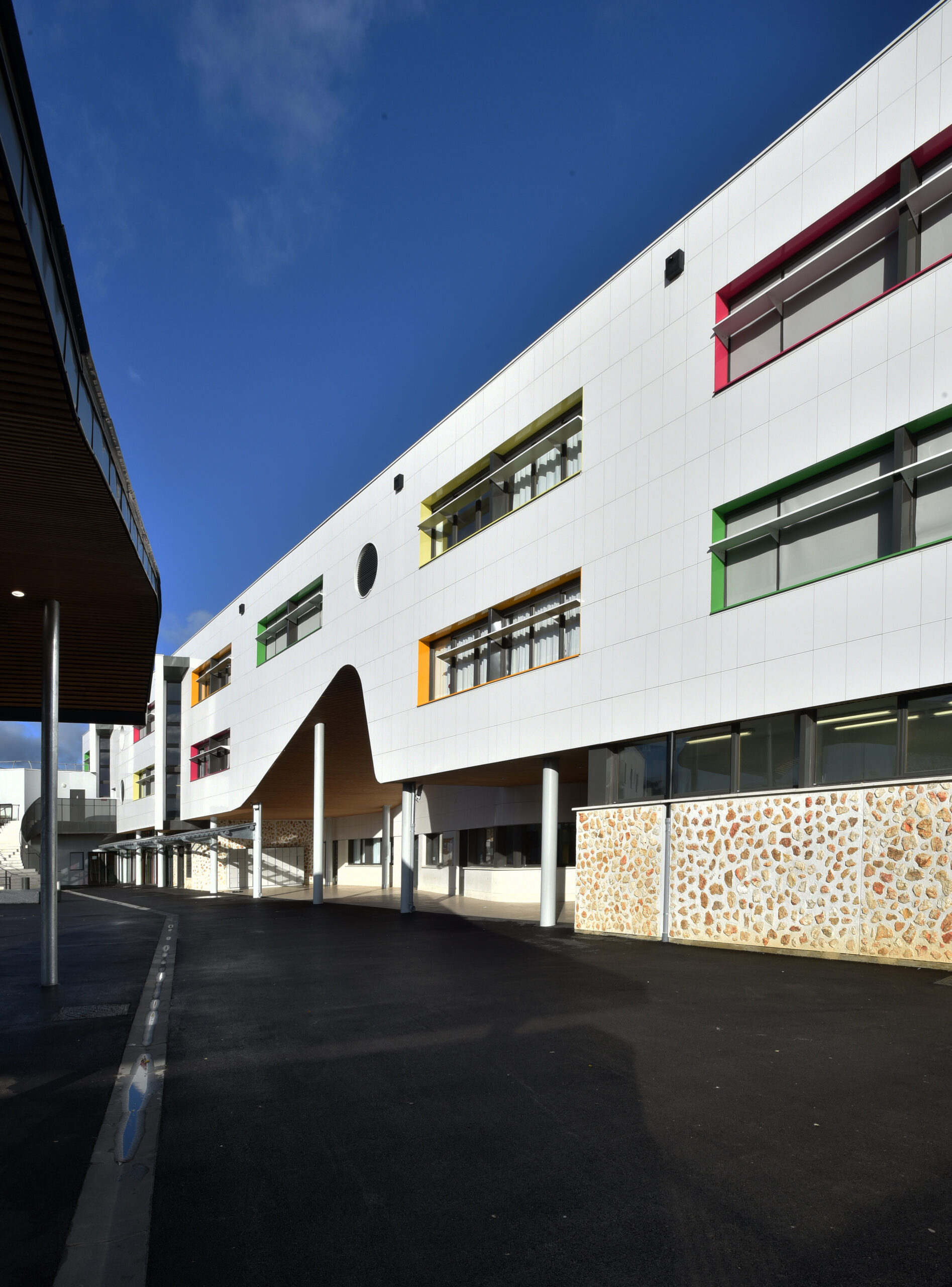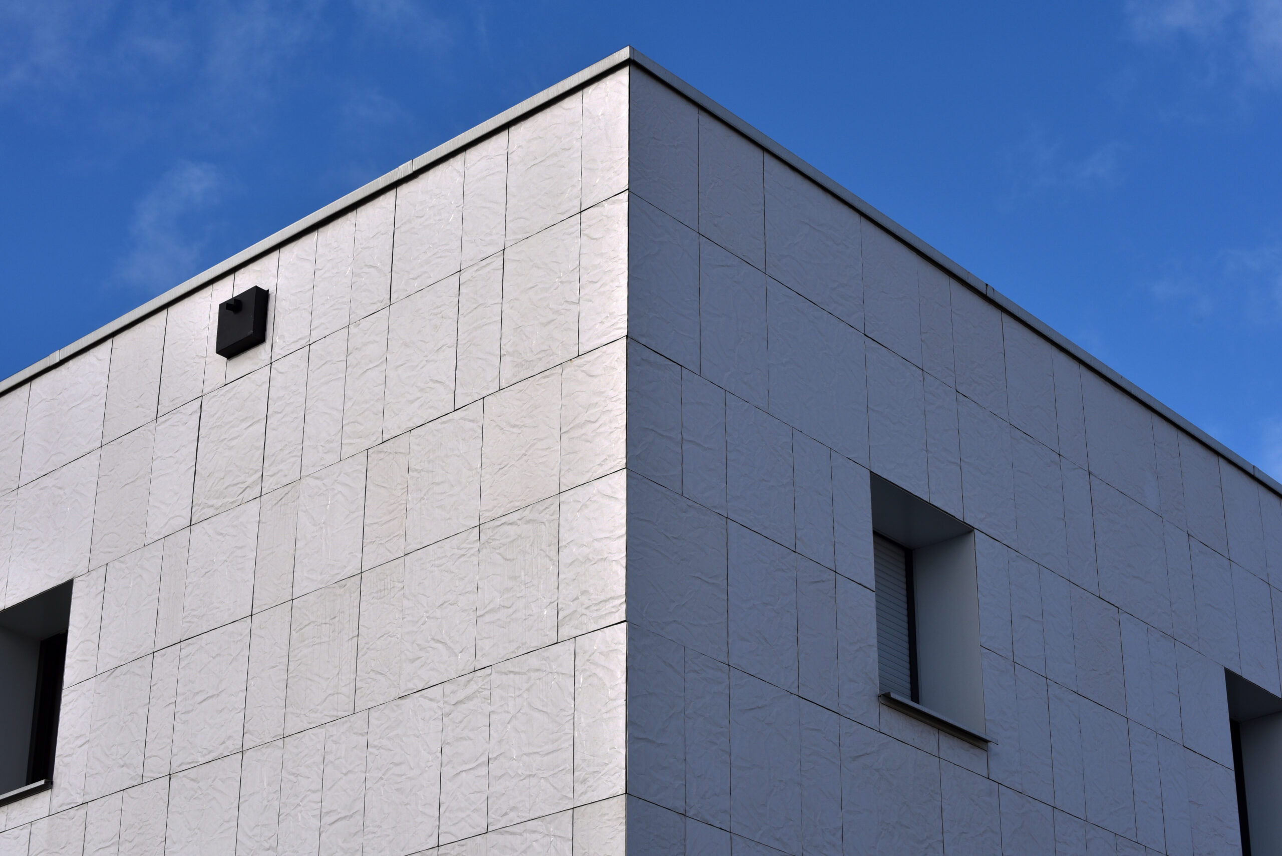 Das Collège Liberté in Chevilly-Larue wurde mit den Fassadenverkleidungen LISSE BRILLANT und PAPYRUS (zerknittertes Papier) verkleidet, die hier als Fassadenverkleidung mit Unterkonstruktion (BAO) verwendet wurden.