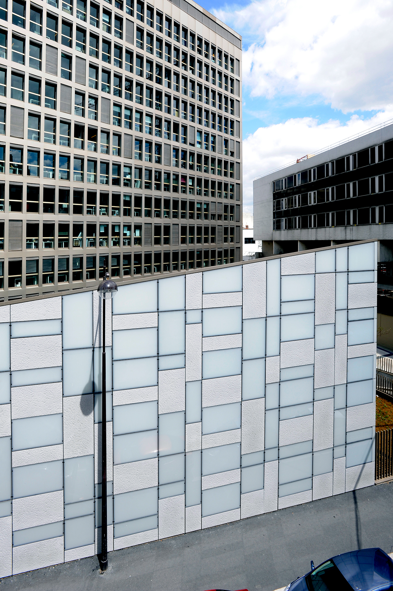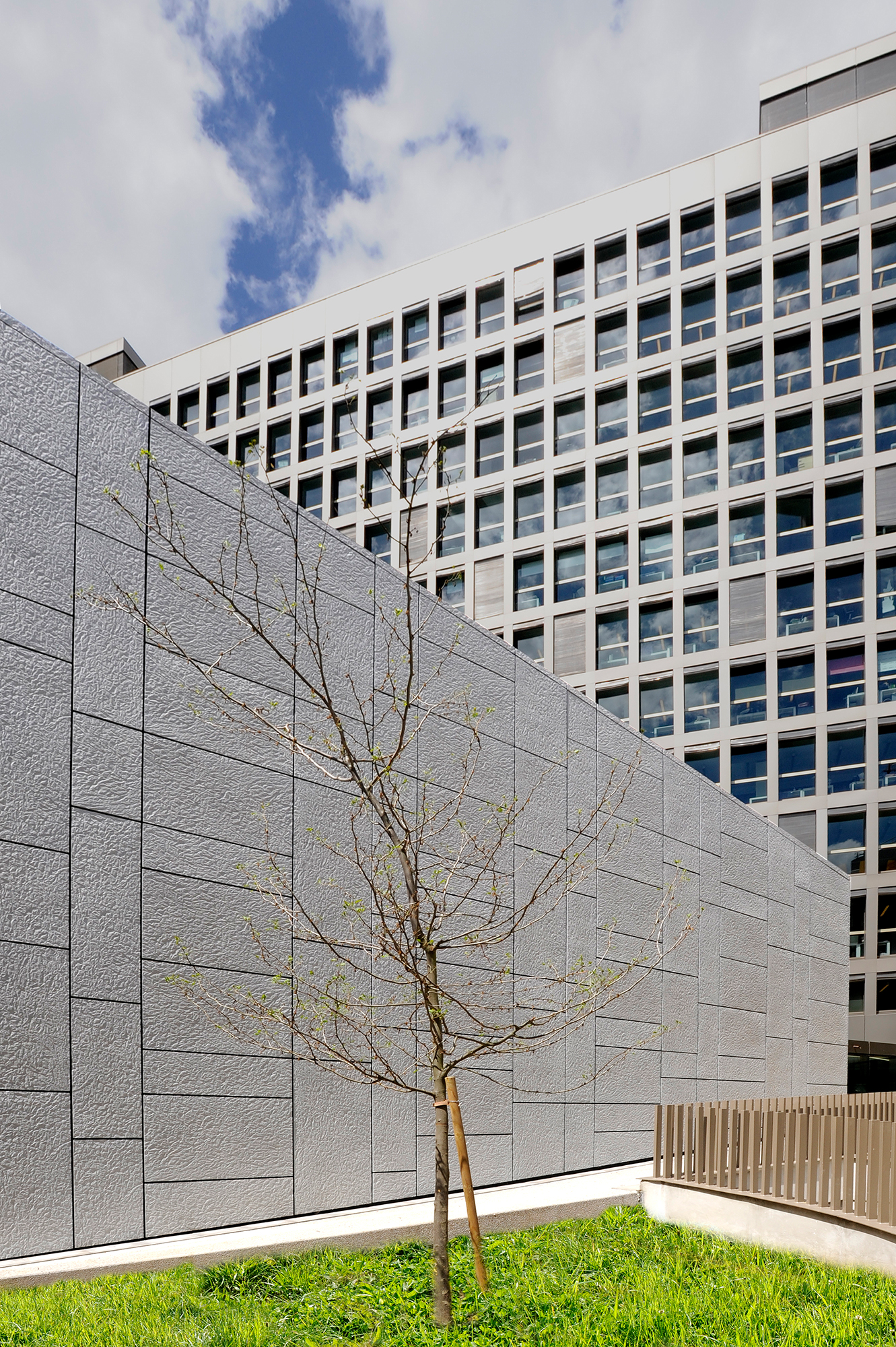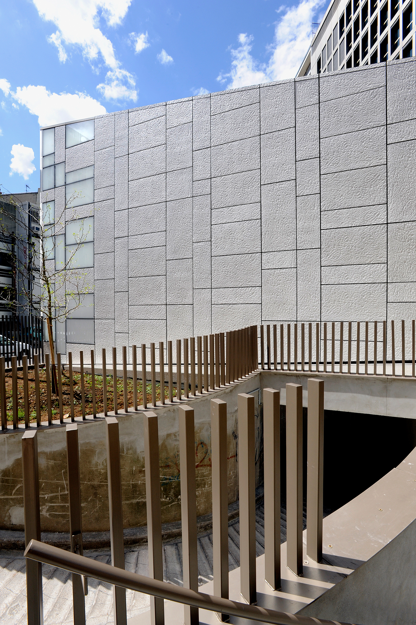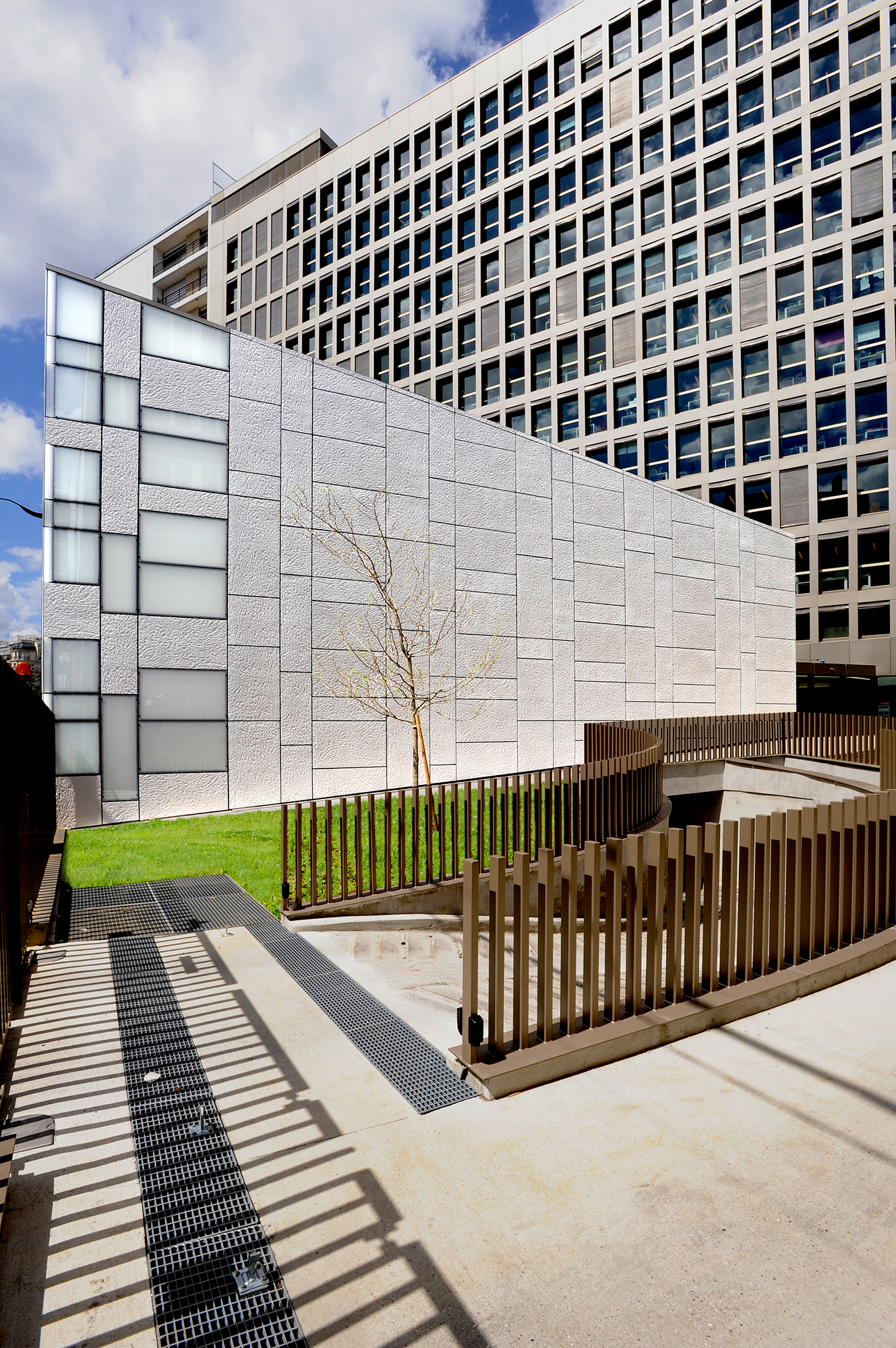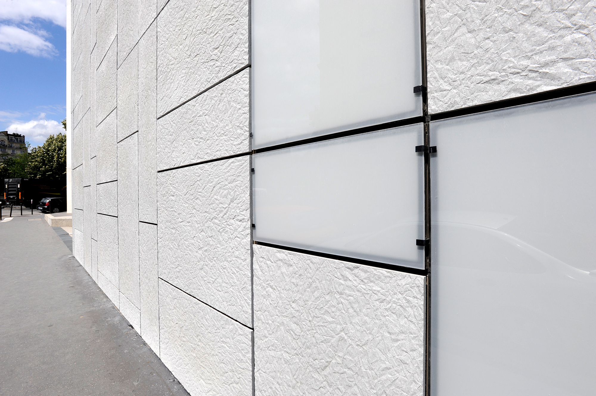 Der Sitz der Réunion des Musées Nationaux befindet sich in Paris, im 12. Das Gebäude hat eine dreieckige Form und seine helle Rahmenverkleidung wechselt zwischen dem glatten Weiß des Milchglases und dem hellen Grau der PAPYRUS Verblendungen (Knitterpapieroptik).
