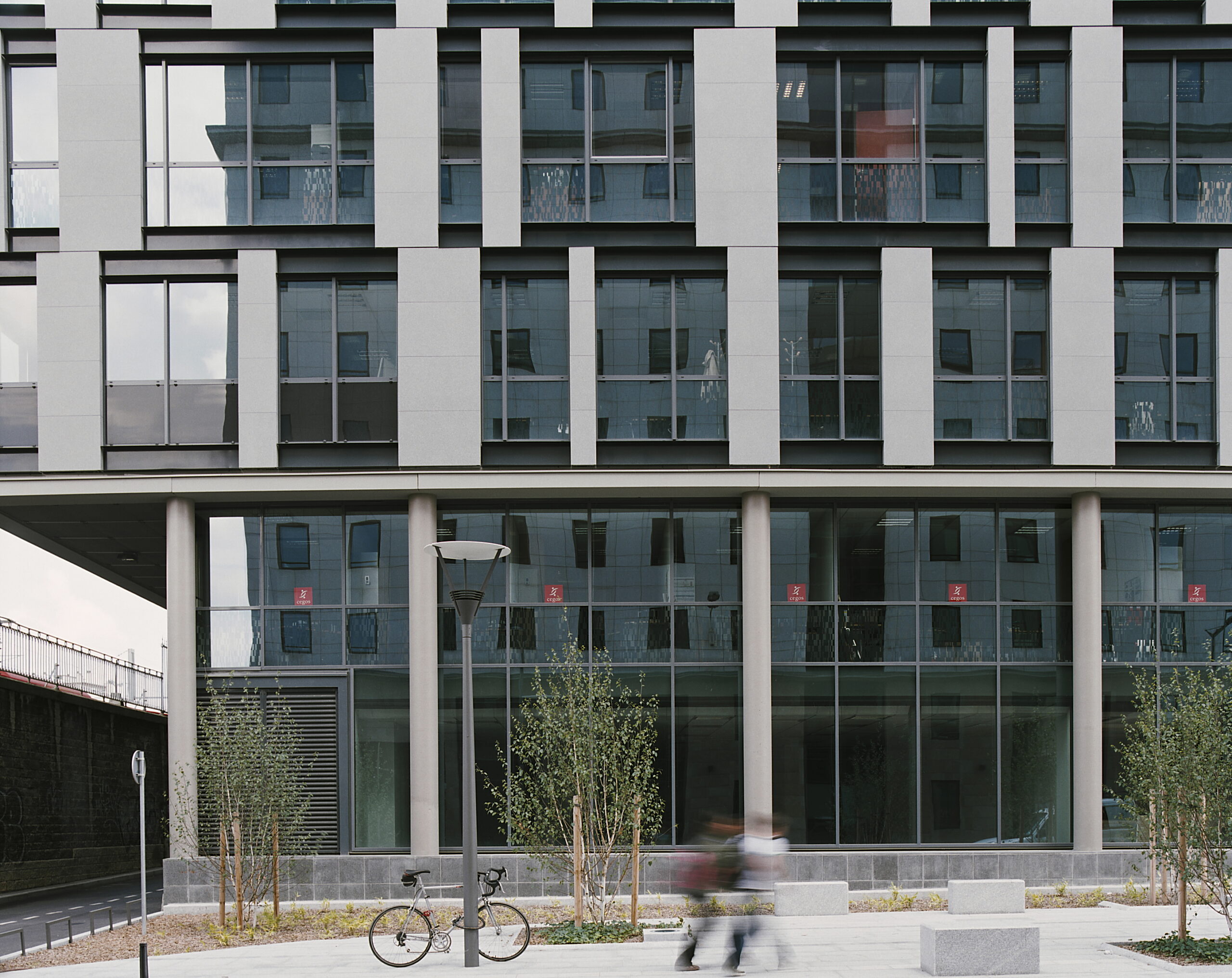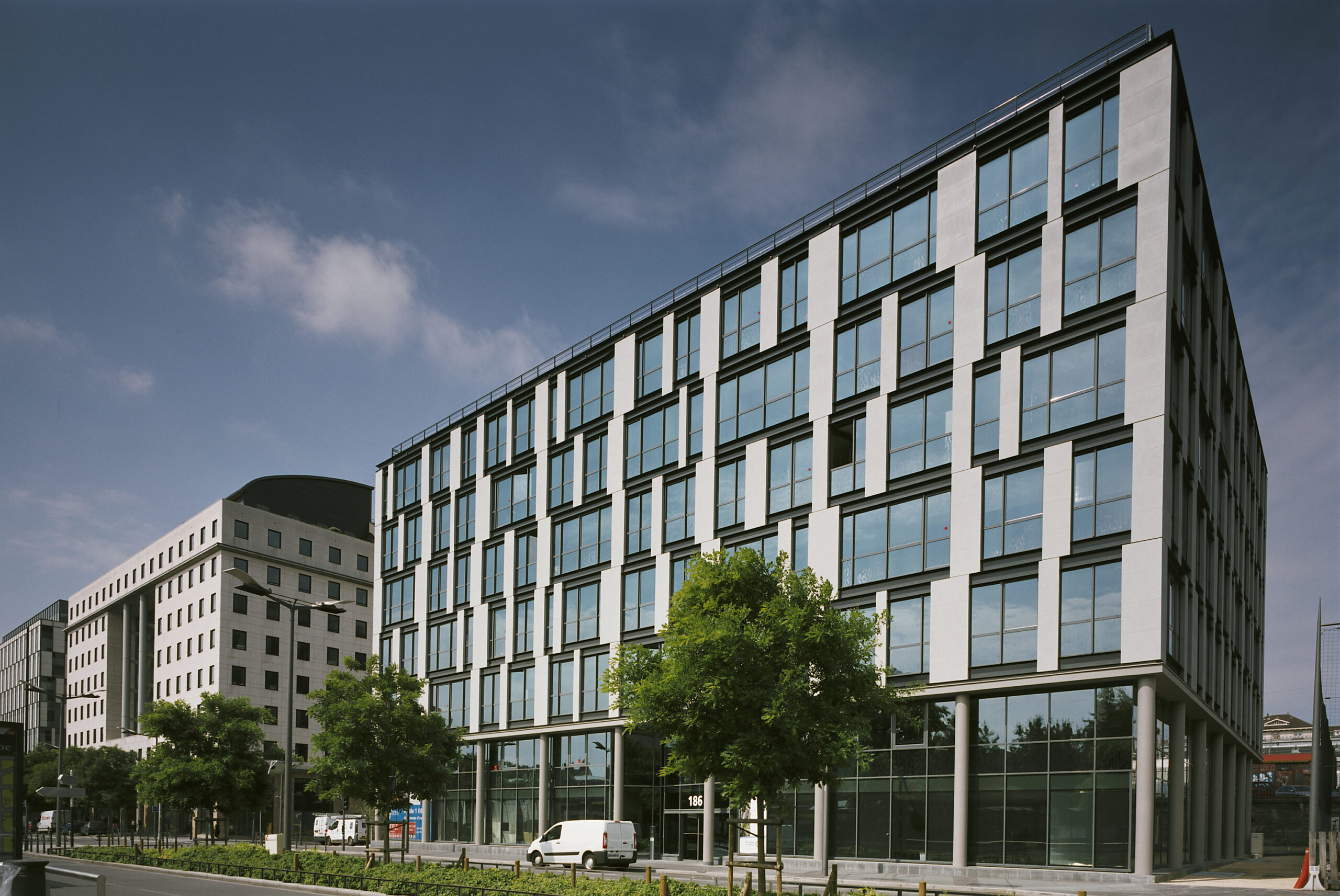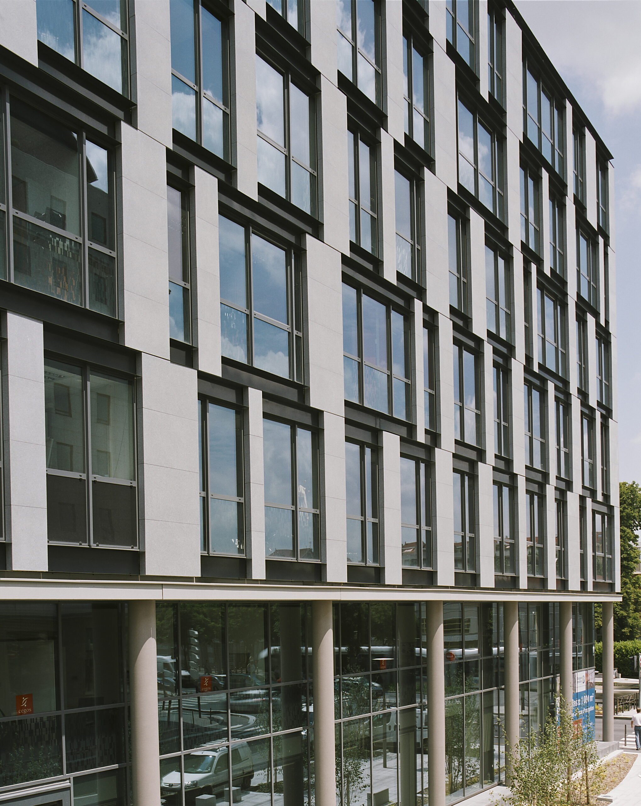 The light facade of this building is based on the aluminum curtain wall principle. For the facade cladding, a GRANITE appearance was chosen, with a cladding and framing system (BAO).
